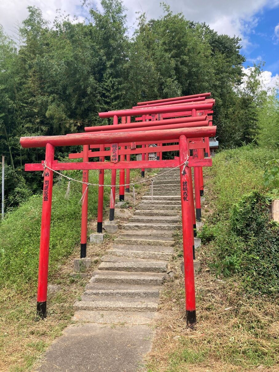 この小高い丘の上にお稲荷様が祭られています。初午の餅まきの際はここからお餅をまきます。